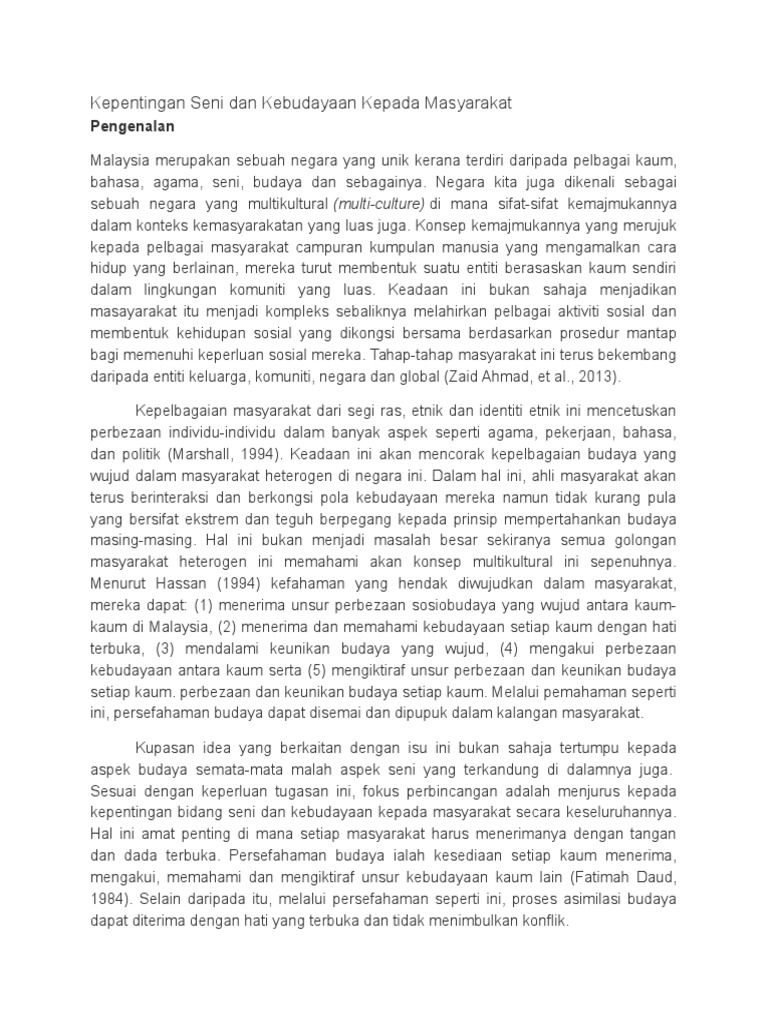 Kepentingan Seni Dan Kebudayaan Kepada Masyarakat Pdf
